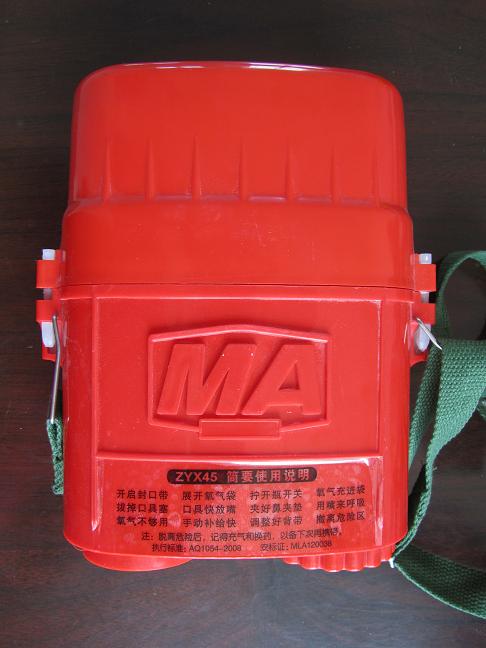1、用途 ZYX45型隔绝式压缩氧气自救器(以下简称仪器),是采用医用压缩氧气为气源,内部结构为一种闭路循环式呼吸系统的自救装置,可用于煤矿有毒有害气体或缺氧环境中使用。主要用于煤矿有毒有害气体污染及缺氧窒息性灾害时,现场人员迅速佩戴,保护人正常呼吸逃离灾区。ZYX45型隔绝式压缩氧自救器是利用压缩氧气为气源的隔绝闭路循环式个人呼吸系统保护装置,主要用于工作环境空气中发生有毒有害气体污染及缺氧时,为佩戴者提供清洁氧气。 2、特点 本仪器结构简单,体积轻巧、携带轻便,操作、维护简单,压力示值直观,防护时间长,具有呼吸阻力小、佩戴舒适,安全可靠,可重复使用等特点。 3、产品执行标准 产品中的本产品执行AQ1054-2008标准。产品所用氧气瓶执行GB5099-94标准;氧气符合GB8982-2009的要求;二氧化碳吸收剂执行MT454-2008标准;压力表符合GB/T1226-2001标准。 4.主要技术指标: